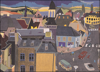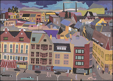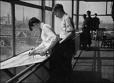 In 1956 schilderde de tekenclub van het Bernardinuscollege te Heerlen 'Panorama Heerlen', gezien vanaf de bovenste etage van het warenhuis Schunck, ook bekend als het Glaspaleis.