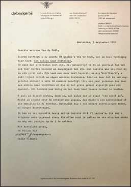 Brief Oscar Timmers over het manuscript De onschuld |