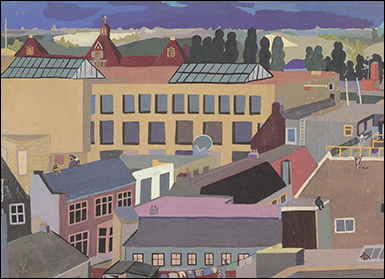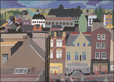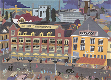 In 1956 schilderde de tekenclub van het Bernardinuscollege te Heerlen 'Panorama Heerlen', gezien vanaf de bovenste etage van het warenhuis Schunck, ook bekend als het Glaspaleis.