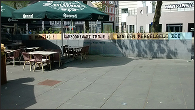 De regel, vermeld op de muur, is afkomstig uit het gedicht 'Helena van Heerlen' en is te vinden in het boek 'Een lange neus, gedichten / beelden', verschenen bij Azul Press.